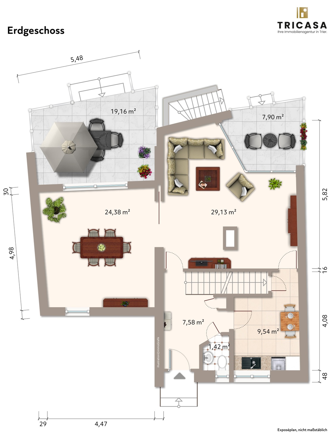 Bei Abschluss eines notariellen Kaufvertrages aufgrund unserer Nachweis- oder Vermittlungstätigkeit beträgt die Käuferprovision 3,57 % inkl. gesetzlicher Mehrwertsteuer vom effektiven Kaufpreis. Die TriCasa GmbH hat mit dem Verkäufer einen provisionspflichtigen Maklervertrag in gleicher Höhe geschlossen.