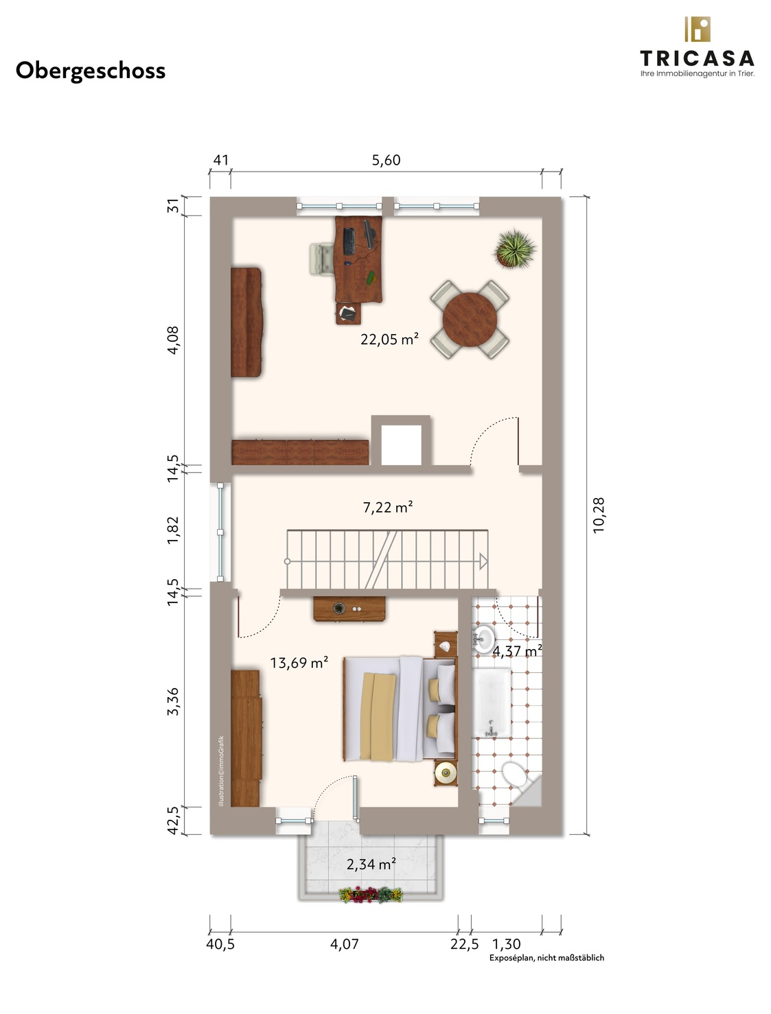Im Obergeschoss wird es ruhiger und privater. Das Schlafzimmer überzeugt mit angenehmer Größe und Balkonzugang, während ein weiteres großzügiges Zimmer flexibel als Kinder-, Gäste- oder Arbeitszimmer genutzt werden kann. Das modernisierte Tageslichtbad präsentiert sich zeitlos und gepflegt – ein Ort zum Entspannen und Abschalten.