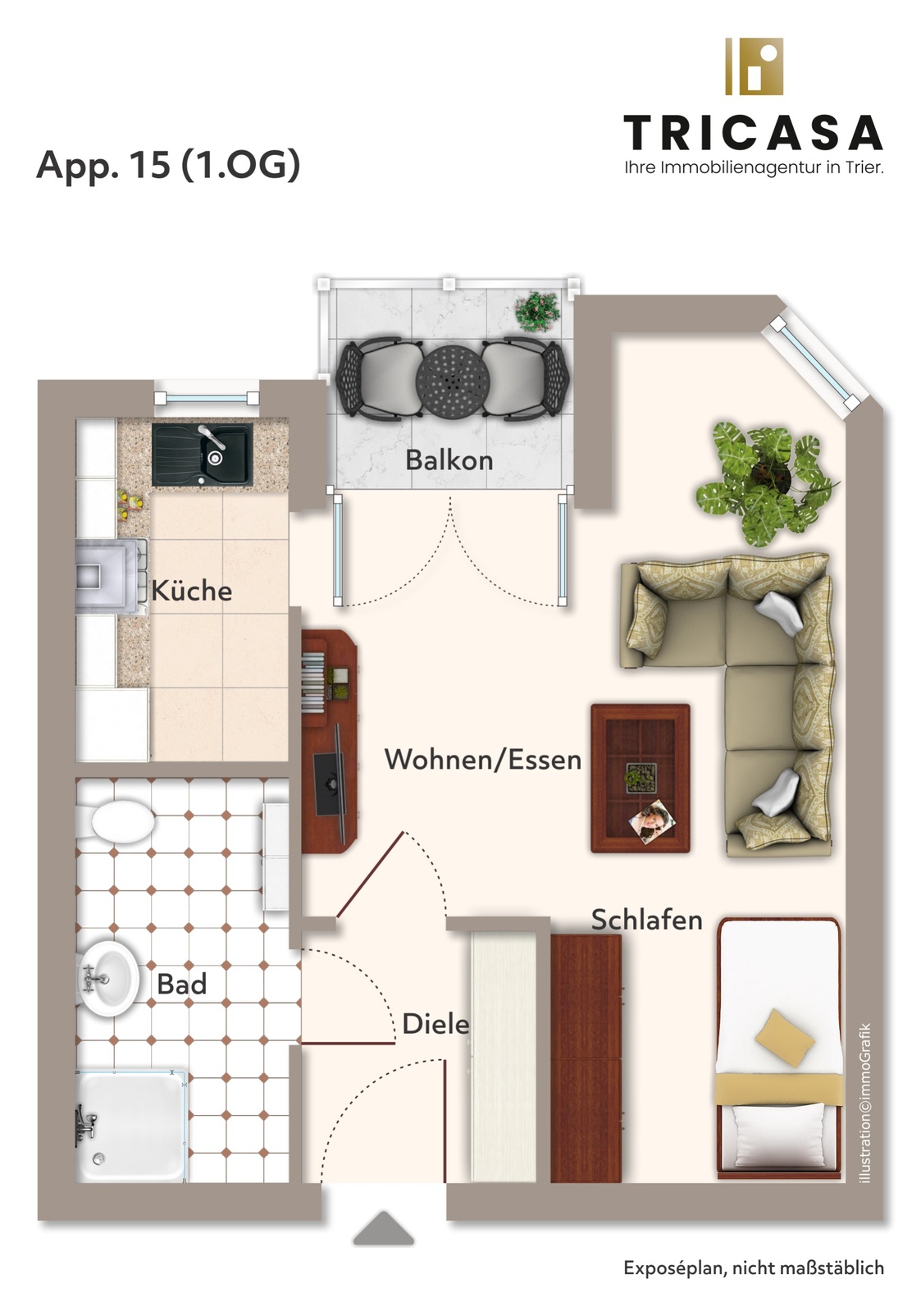 Bei Abschluss eines notariellen Kaufvertrages aufgrund unserer Nachweis- oder Vermittlungstätigkeit beträgt die Käuferprovision 3,57 % inkl. gesetzlicher Mehrwertsteuer vom effektiven Kaufpreis. Die TriCasa GmbH hat mit dem Verkäufer einen provisionspflichtigen Maklervertrag in gleicher Höhe geschlossen.