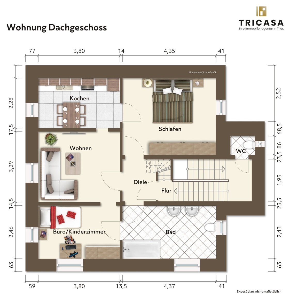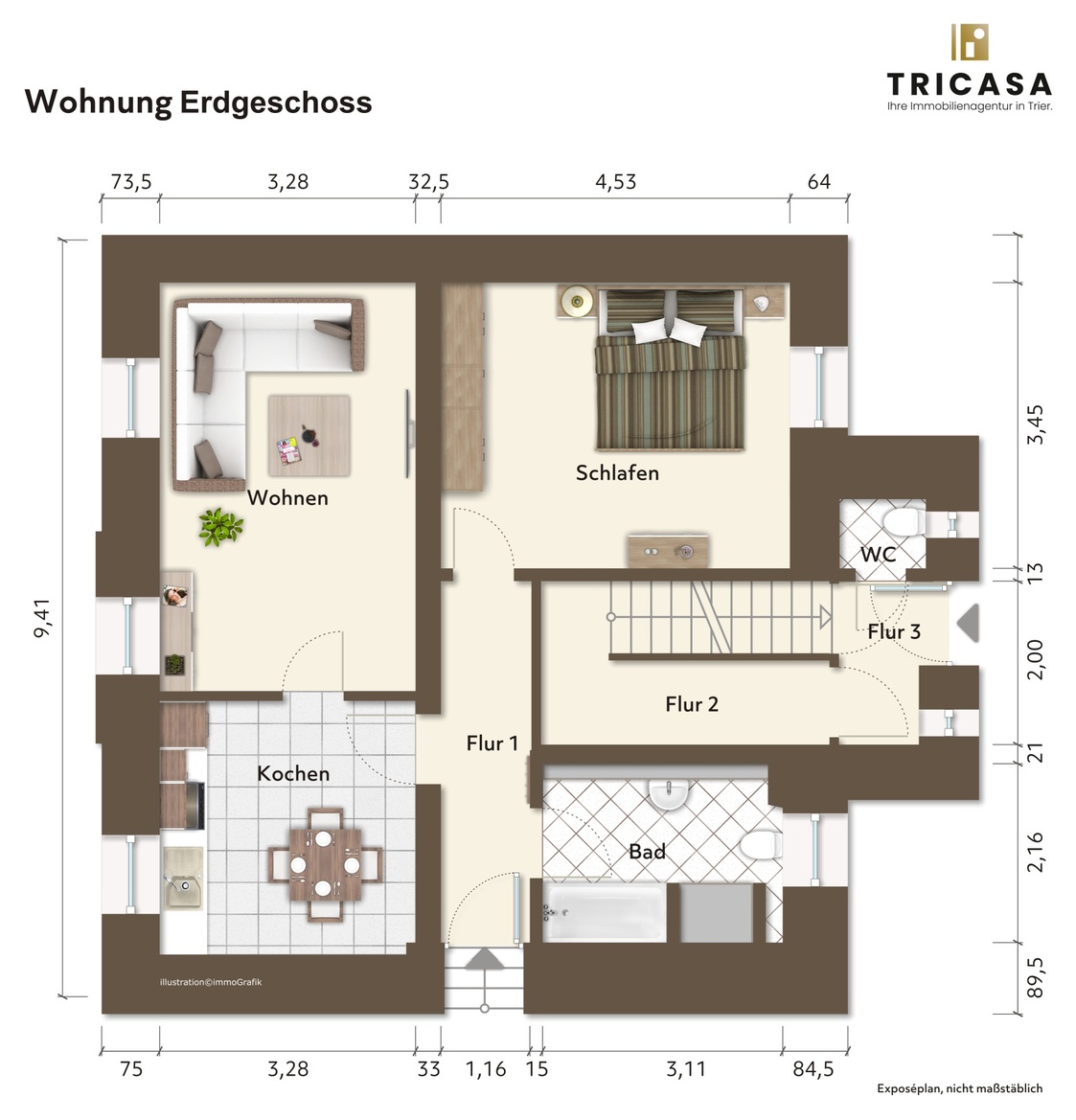 Bei Abschluss eines notariellen Kaufvertrages aufgrund unserer Nachweis- oder Vermittlungstätigkeit beträgt die Käuferprovision 3,57 % inkl. gesetzlicher Mehrwertsteuer vom effektiven Kaufpreis. Die TriCasa GmbH hat mit dem Verkäufer einen provisionspflichtigen Maklervertrag in gleicher Höhe geschlossen.