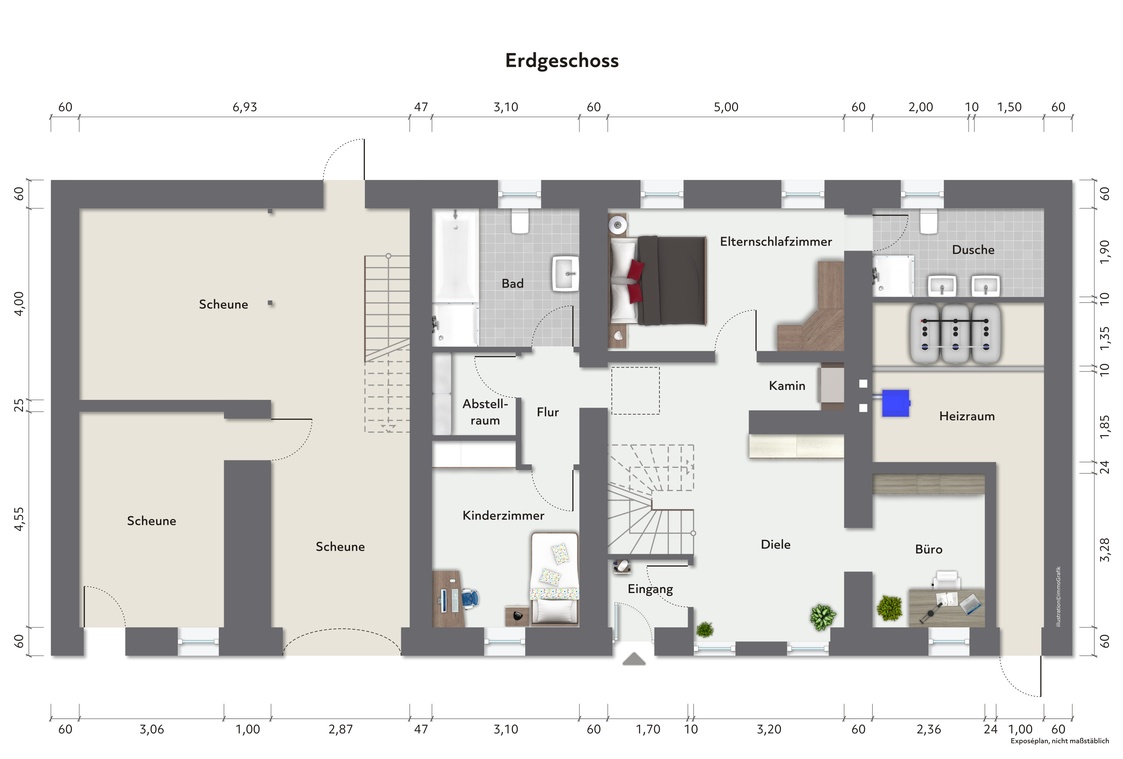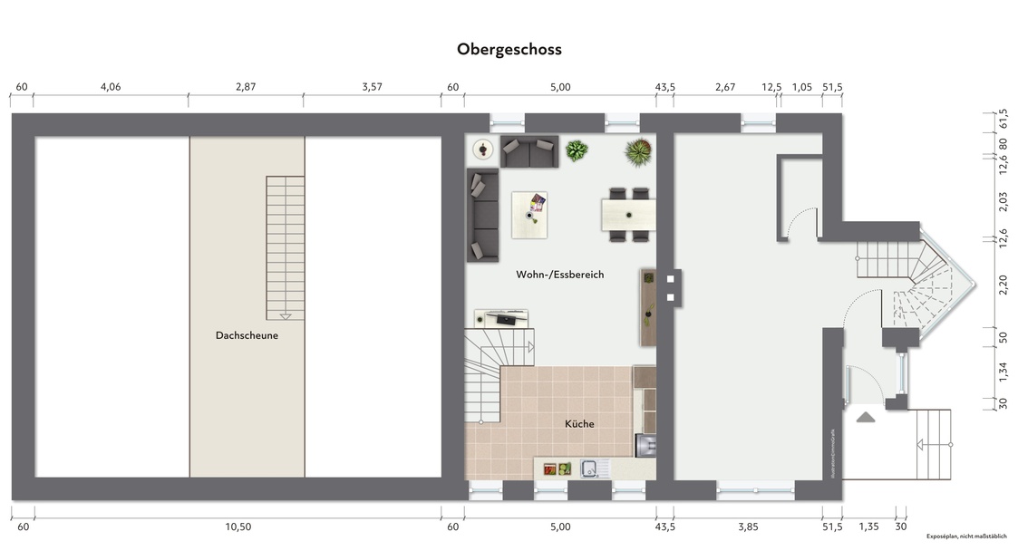 Und dann entdecken Sie die Scheune: groß, robust, voller Möglichkeiten. Ob Hobbyraum,